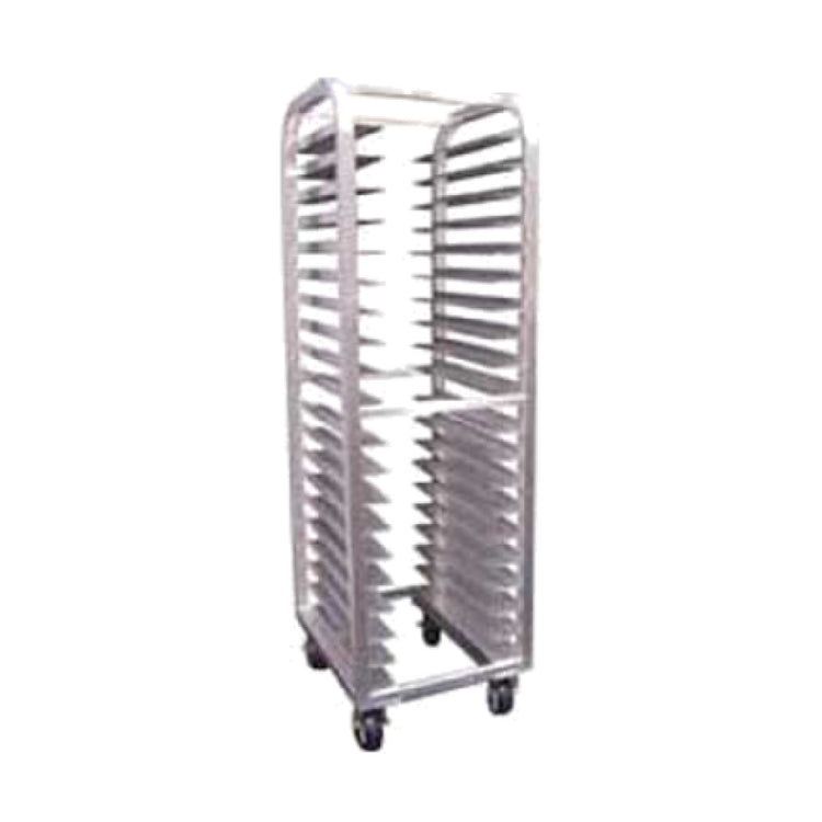 The Winholt AL-1820-HD Pan Rack Mobile Full Height is an expertly engineered solution for any commercial kitchen requiring efficient storage and mobility for baking operations. With its capacity to accommodate 20 full-size 18" x 26" sheet pans, this pan rack is crafted from welded aluminum, ensuring both lightweight maneuverability and robust durability. The open-sided design facilitates easy access and quick loading or unloading from the end, optimizing workflow in bustling kitchen environments. Equipped with 5" x 2" polyurethane casters, the rack offers smooth and reliable mobility across various floor surfaces, enhancing its functionality in dynamic professional settings. NSF certification underscores its adherence to stringent public health and safety standards, making it a trusted choice for establishments committed to maintaining high sanitation standards. The Winholt AL-1820-HD Pan Rack is particularly beneficial for bakeries, restaurants, and catering services that require versatile and reliable storage solutions for their baking sheets. Its thoughtful design and sturdy construction make it an indispensable asset in achieving seamless kitchen operations, allowing for both time efficiency and spatial optimization. This pan rack represents a blend of practicality and durability, tailored for the demanding needs of the food industry.