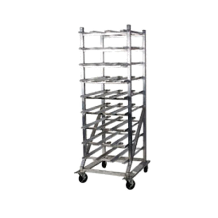The Winholt CR-162M Rack Can Storage Mobile Design With Casters is an expertly designed storage solution, engineered for optimal efficiency in food service and commercial kitchen environments. This storage rack features self-feeding, gravity-fed shelves, which are highly effective in ensuring smooth rotation of can inventory. With the capacity to hold up to 162 #10 cans or 216 #5 cans, this rack is an indispensable asset for large-scale food operations requiring organized and accessible storage. Constructed from 1-1/2" welded aluminum tubing, the CR-162M is both lightweight and durable, offering an ideal balance between strength and maneuverability. The rack's dimensions, standing at 27 1/2 inches wide, 35 inches deep, and 76 inches high, make it a space-efficient storage option. Its mobile design, enhanced by casters, allows for easy transport and repositioning within the storage area, catering to dynamic kitchen layouts. The Winholt CR-162M is NSF certified, ensuring that it meets strict public health and safety guidelines. This storage rack is particularly valuable for institutions such as hospitals, schools, and catering services, where high-volume can storage is essential, providing a reliable and organized solution to streamline day-to-day operations.