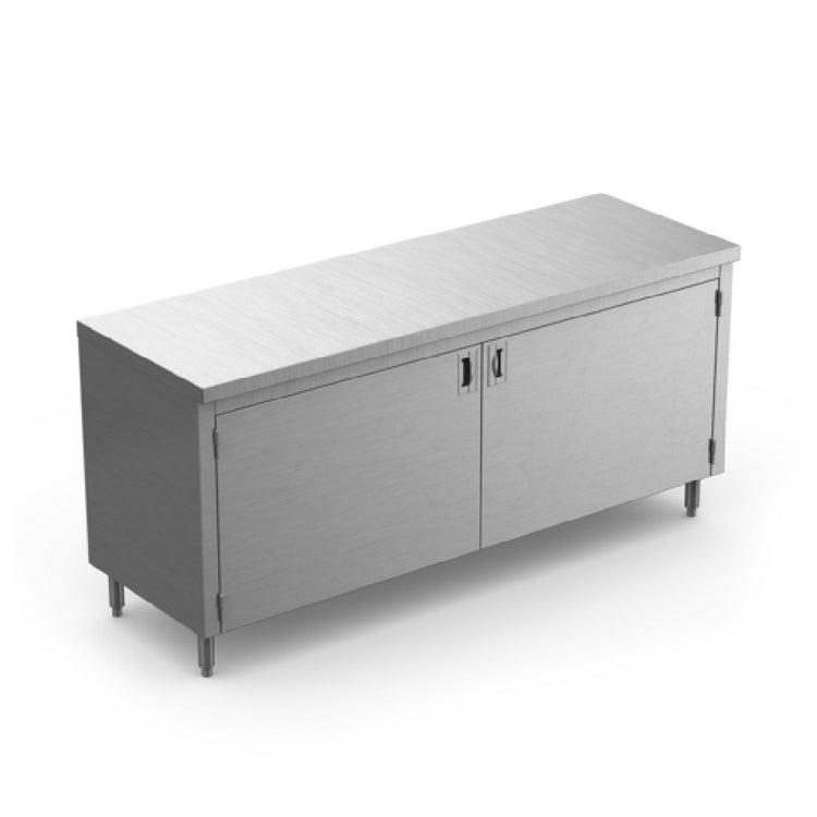 The Winholt STCT-HD3684-MS Enclosed Table Mid-shelf with (4) Hinged Doors is a versatile and durable solution designed for the demanding environments of commercial kitchens and food service operations. Engineered with precision, this enclosed table features a mid-shelf configuration, providing ample storage space to organize tools and supplies efficiently. The four hinged doors offer easy access while ensuring secure storage. Constructed from all-welded 16-gauge stainless steel, it promises exceptional strength and longevity, resistant to the rigors of daily use. The adjustable bullet feet allow for a height variation up to 1-3/8 inches, ensuring stability even on uneven surfaces. The product is certified by NSF, guaranteeing compliance with rigorous health and safety standards crucial for the food service industry. This enclosed table is not only a testament to superior craftsmanship but also a practical choice for establishments prioritizing organization, hygiene, and efficiency in their operations. From bustling restaurants to large-scale food processing units, the Winholt STCT-HD3684-MS stands as a reliable and essential addition to maintain a streamlined workflow.