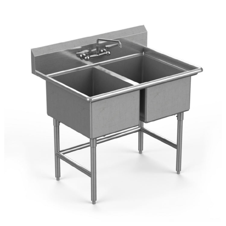 The Winholt WS2T2424 Sink Two Compartment 24" Front-to-back X 24" Wide X 12" Deep With Backsplash is an expertly crafted solution for a variety of industrial and commercial kitchen environments. This sink features dual compartments, each measuring 24 inches front-to-back and 24 inches wide, providing ample space for washing, rinsing, and sanitizing tasks. Its 12-inch depth ensures adequate volume for handling large kitchenware and utensils. The integrated backsplash is a thoughtful addition, preventing water spillage and maintaining a clean workspace. Constructed from 16-gauge, 304 stainless steel, the sink demonstrates superior durability and corrosion resistance, ideal for high-traffic kitchens. The stainless steel legs are accompanied by adjustable feet, ensuring stability on uneven surfaces and allowing for customized height adjustment. Certified by NSF, this sink meets rigorous public health and safety standards, making it a reliable choice for food service operations. The Winholt WS2T2424 sink is designed to meet the requirements of restaurants, hotels, and institutional kitchens, where efficiency and hygiene are paramount. Its robust construction and practical design elements make it a valuable asset for any industry segment requiring reliable kitchen infrastructure.