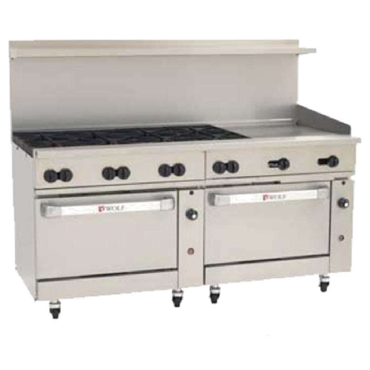 - (8) high-efficiency 30,000 BTU burners for superior cooking performance