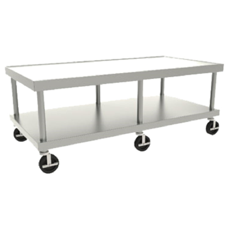 The Wolf STAND/C-60 Equipment Stand - 61" W x 30" D x 24" H with Marine Edge is an expertly crafted equipment stand that provides essential support and functionality across various professional environments. This unit is defined by its dimensions of 61 inches in width, 30 inches in depth, and 24 inches in height, engineered to accommodate a range of equipment sizes securely. It features a marine edge, a design element that helps prevent spillages from reaching the floor, enhancing safety and cleanliness in busy settings. The stainless steel construction not only ensures durability and long-lasting performance but also offers a sleek, professional appearance. An additional undershelf maximizes storage capacity, offering convenient access to essential tools and supplies. To enhance maneuverability, the stand is equipped with 5-inch casters, allowing easy repositioning within your workspace. The Wolf STAND/C-60 Equipment Stand is particularly suitable for demanding environments where reliability and efficiency are paramount, such as commercial kitchens, laboratories, and industrial facilities. Its robust design meets the varied needs of different market segments within industries that rely on sturdy and versatile equipment stands.