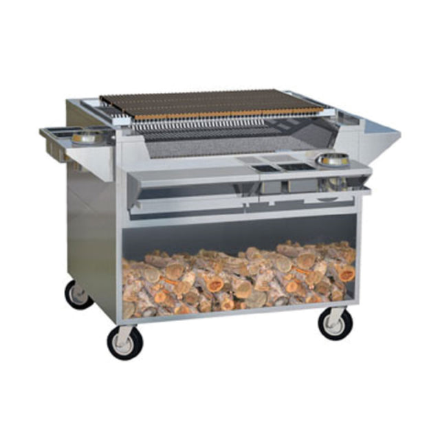 Wood Stone, WS-SFB-34, Mt. Saint Helens, Shallow-Box Charbroiler, 34" w x 36"d, (5) 6" x 24" cast iron grates on sliding stainless steel frame, "heat-sink" style fire box cast from dense high-temperature ceramic, insulated, includes (1) grate tool, (1) particle shovel & (1) T-style floor brush 40", stainless steel exterior, stainless steel wood storage cabinet base, casters set of 4 (2 locking 2 non locking), cETL