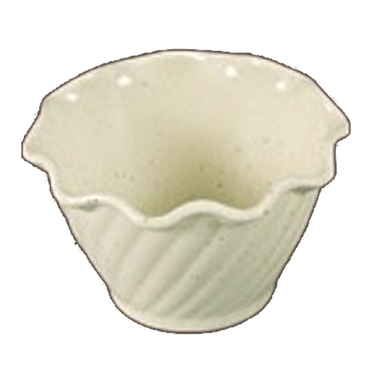 The Yanco AD-005 Ardis Dessert Dish is meticulously designed to enhance the presentation of any dessert with its 3-3/4" diameter and 2" height, creating a perfect balance between aesthetics and practicality. This round dish features a distinctive fluted, wavy rim, adding a touch of elegance to its classic design. Constructed from extra-heavyweight melamine, this dessert dish stands out for its durability and resilience, making it an ideal choice for both high-volume commercial settings and stylish home dining. The beige hue offers a neutral and sophisticated background, highlighting the vibrant colors of the desserts it holds. As a testament to its convenience and functionality, the dish is dishwasher safe, simplifying the cleaning process. Additionally, its NSF certification assures compliance with rigorous health and safety standards, essential for professional kitchens. Sold by the case, with each case containing 6 dozen dishes, it is a cost-effective solution for restaurants, catering events, and large gatherings that require bulk quantities without compromising on quality. The Yanco AD-005 Ardis Dessert Dish seamlessly combines form and function, making it a versatile option suitable for a wide range of dessert presentations in various segment markets within the culinary industry.