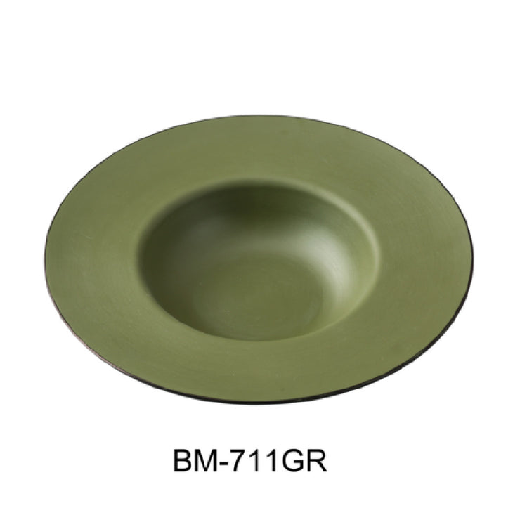 The Yanco BM-711GR Dessert Plate is an elegantly designed piece, measuring 11-1/2"W x 11-1/2"D x 2-1/2"H, with a capacity of 16 oz. Crafted from durable melamine, this plate is ideal for environments where both durability and aesthetics are paramount. Its two-tone Birmingham Green color provides a sophisticated touch suitable for a variety of dining settings, from upscale restaurants to casual cafes. The melamine construction ensures that the plate is not only lightweight but also dishwasher safe, making it a practical option for high-traffic dining areas that require quick and efficient cleaning processes. Sold by the case and packed by a dozen, it offers an economical solution for businesses needing to purchase in bulk. The Yanco BM-711GR Dessert Plate’s design and material make it an excellent choice for establishments seeking a balance of style, functionality, and durability in their tableware selections. Its dimensions and color provide versatility, accommodating different types of dessert presentations while maintaining a visually appealing tabletop aesthetic. Whether used in a hospitality setting or for personal dining experiences, this dessert plate stands out for its practicality and elegant appeal.