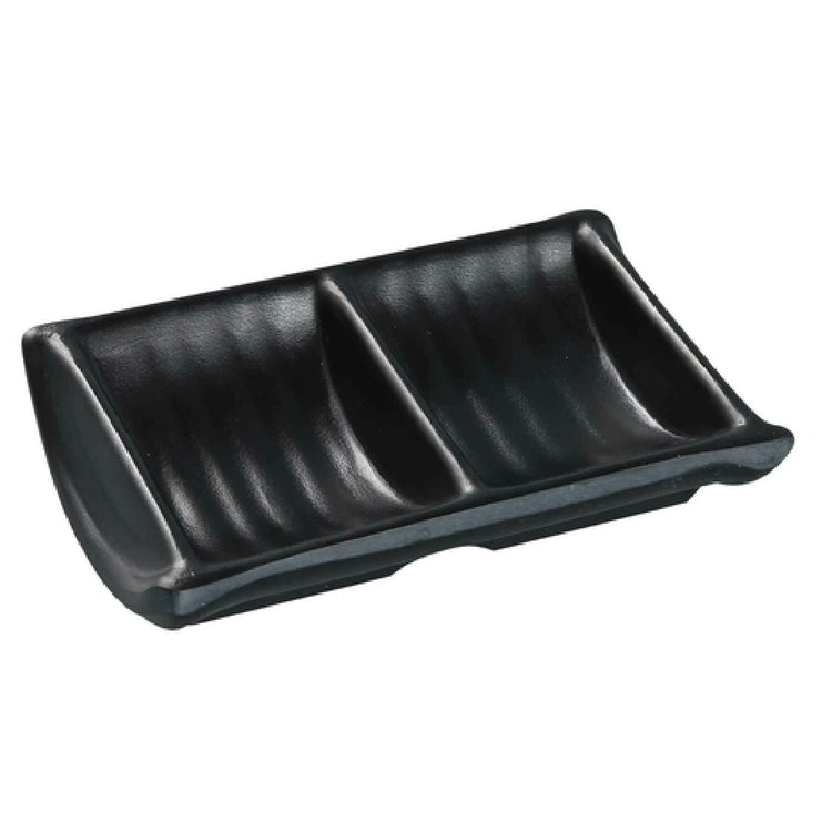 The Yanco BP-4031 Black Pearl Sauce Dish is a sophisticated and practical choice for culinary professionals and enthusiasts. This sauce dish, with a capacity of 2 oz., is designed in a rectangular shape with dimensions of 4-3/4"L x 3"W, providing ample space for a variety of sauces and condiments. The unique feature of 2-compartments allows for serving multiple sauces simultaneously, enhancing the dining experience. Crafted in an Asian style, it offers an elegant aesthetic that complements a wide array of table settings. The dish's matting surface adds a touch of modern design while ensuring a secure grip. Made from durable melamine, this dish is not only lightweight but also resistant to breakage, making it ideal for both commercial and home use. Its striking black color enhances the presentation of vibrant sauces and dips. Sold by case and packed by 6 dozen per case, the Yanco BP-4031 Black Pearl Sauce Dish is a cost-effective and stylish solution for restaurants, caterers, and hospitality industries looking to enhance their serving ware with a touch of sophistication and practicality.