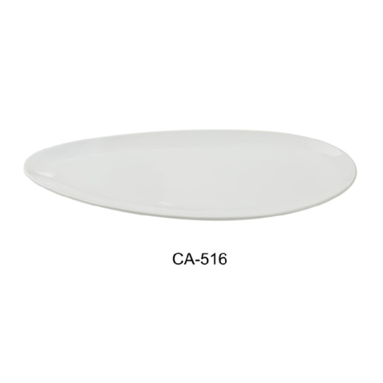 The Yanco CA-516 Cambria Plate 7-5/8"W x 16-1/2"D x 3/4"H Leaf Shape is a distinct serving solution that combines elegance and functionality. Crafted from porcelain with an aluminum foundation, this leaf-shaped plate is designed to complement a variety of dining settings, from upscale restaurants to casual cafes. Its dimensions of 7-5/8 inches in width, 16-1/2 inches in depth, and a height of 3/4 inches provide ample surface area for presenting culinary creations with style. The white finish of the plate offers a neutral backdrop that enhances the visual appeal of any dish. This plate is both microwave and dishwasher safe, making it a practical choice for busy food service environments where efficiency and durability are paramount. Sold by the case, each case contains a dozen plates, ensuring an ample supply for restaurant use. The Yanco CA-516 Cambria Plate's unique leaf shape adds a touch of nature-inspired design to table settings, making it an excellent choice for establishments looking to stand out in presentation. This combination of aesthetic appeal, practicality, and quality construction makes the Yanco CA-516 Cambria Plate an invaluable asset for diverse markets in the hospitality industry.