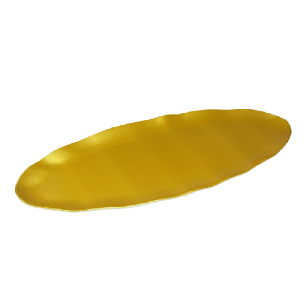 The Yanco CAT-2030G Catering Platter is a versatile and elegant serving solution designed for the catering and food service industry. Measuring 30 inches in length and 12 inches in width, this oval platter offers ample space for presenting a variety of dishes, making it ideal for large gatherings and events. Constructed from durable melamine, it provides the look and feel of fine china while being resistant to breakage and chipping, ensuring longevity and ease of handling. The platter's gold finish adds a touch of sophistication and luxury, enhancing the presentation of food and making it suitable for upscale dining experiences. Its dishwasher-safe feature ensures quick and efficient cleaning, saving time and effort in busy kitchen environments. Sold by the case, with each case containing six platters, this product is designed to meet the needs of catering businesses, restaurants, hotels, and other food service operations that require reliable and attractive serving solutions. The Yanco CAT-2030G Catering Platter seamlessly combines functionality with aesthetic appeal, making it an excellent choice for those seeking a high-quality serving option that elevates the dining experience while withstanding the rigors of professional use.