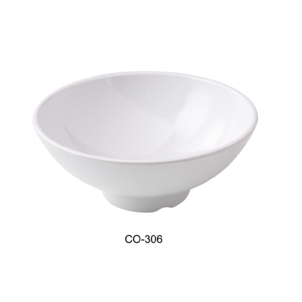 The Yanco CO-306 Serving Bowl is a versatile and practical kitchen essential, boasting a diameter of 6-1/2 inches and a height of 2-1/2 inches. It has a capacity of 16 ounces, making it an ideal choice for serving a variety of dishes. Crafted from durable melamine, this round bowl is not only lightweight but also resistant to breakage, ensuring longevity in both commercial and home settings. The bowl's dishwasher-safe feature further enhances its convenience for busy food service environments, allowing for efficient and hygienic cleaning. Its pristine white color and Coupe Pattern add a touch of elegance, making it suitable for various dining aesthetics, from casual to formal. Sold by the case, with each case containing 4 dozen bowls, the Yanco CO-306 Serving Bowl is designed to meet the bulk needs of restaurants, catering services, and other food establishments. Its thoughtful design and practical features make it a valuable addition to any culinary operation, where both functionality and presentation are paramount.