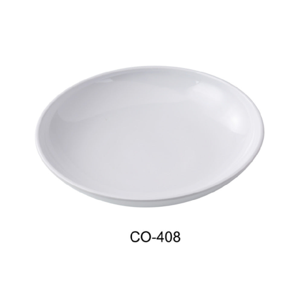 The Yanco CO-408 Pasta Or Salad Bowl is a versatile dining essential, measuring 8-3/4 inches in width and depth, with a height of 2 inches, and a capacity of 18 ounces. Crafted from durable melamine, this bowl is designed to withstand the rigors of both commercial and home environments, making it an exceptional choice for restaurants, catering businesses, and everyday household use. Its pristine white hue and Coupe Pattern offer a classic yet modern aesthetic, seamlessly complementing a variety of table settings and decor styles. The melamine construction ensures that the bowl is lightweight and shatter-resistant, providing a safe and practical solution for high-traffic dining areas. Moreover, its dishwasher-safe property simplifies the cleaning process, enhancing efficiency in busy kitchen operations. Sold by the case and packed in quantities of two dozen per case, the Yanco CO-408 bowl is ideal for establishments requiring bulk quantities for consistent service. Its practical dimensions and robust build make it suitable for serving a diverse range of dishes, from pasta and salads to other culinary creations. This bowl exemplifies a blend of functionality and style, catering to different market needs within the food service industry.