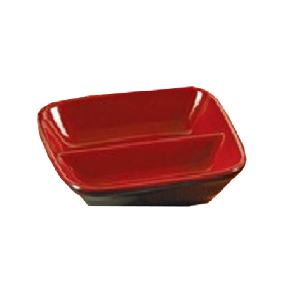 The Yanco CR-0001 Two-Tone Divided Sauce Dish is a versatile and compact serving solution, designed to enhance culinary presentations with its distinctive dual-tone aesthetics. Measuring 3-1/2 inches in length, 3-1/2 inches in width, and 2-1/2 inches in height, this dish provides a unique compartmentalized design with two separate sections, each capable of holding up to 1 oz. of sauces or condiments. Crafted from durable melamine, it boasts a striking black and red color scheme, ensuring it is both visually appealing and highly functional. This sauce dish is dishwasher safe, offering ease of maintenance for busy kitchens, and is sold by the case, with each case containing 6 dozen units. Its square shape provides a modern touch, making it suitable for various market segments, including upscale restaurants, catering services, and casual dining establishments. The Yanco CR-0001 is an excellent choice for those seeking to elevate their dining experiences, providing a practical yet stylish means to serve an array of sauces and condiments, while its robust construction ensures long-lasting use, even in high-volume foodservice environments.