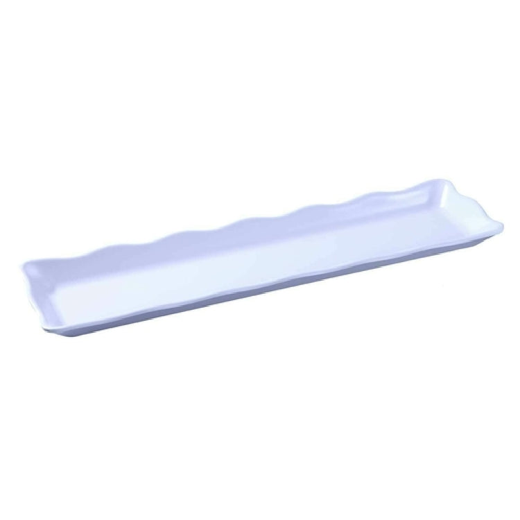 The Yanco DC-6019W Serving Tray 19" X 5-1/4" X 1" Rectangular is a meticulously crafted serving solution designed to meet diverse industry needs. This tray features a distinct scalloped edge, adding a touch of elegance to its functional design. Constructed from durable melamine, it combines the aesthetic appeal of fine china with the resilience needed for rigorous use in commercial environments. Its sleek white finish enhances presentation, making it suitable for a variety of settings, from upscale dining establishments to casual buffet services. Measuring 19 inches in length, 5-1/4 inches in width, and 1 inch in height, this tray provides ample space for serving a variety of dishes, from appetizers to desserts. Sold by the case, each case contains 12 individual trays, offering a practical bulk purchase option for businesses that prioritize efficiency and cost-effectiveness. The Yanco DC-6019W Serving Tray is tailored for the hospitality industry, catering services, and food presentation sectors, where reliability and visual appeal are paramount. Its lightweight yet sturdy construction ensures ease of handling, while the melamine material promises longevity and resistance to breakage, making it a valuable asset in any professional culinary setting.
