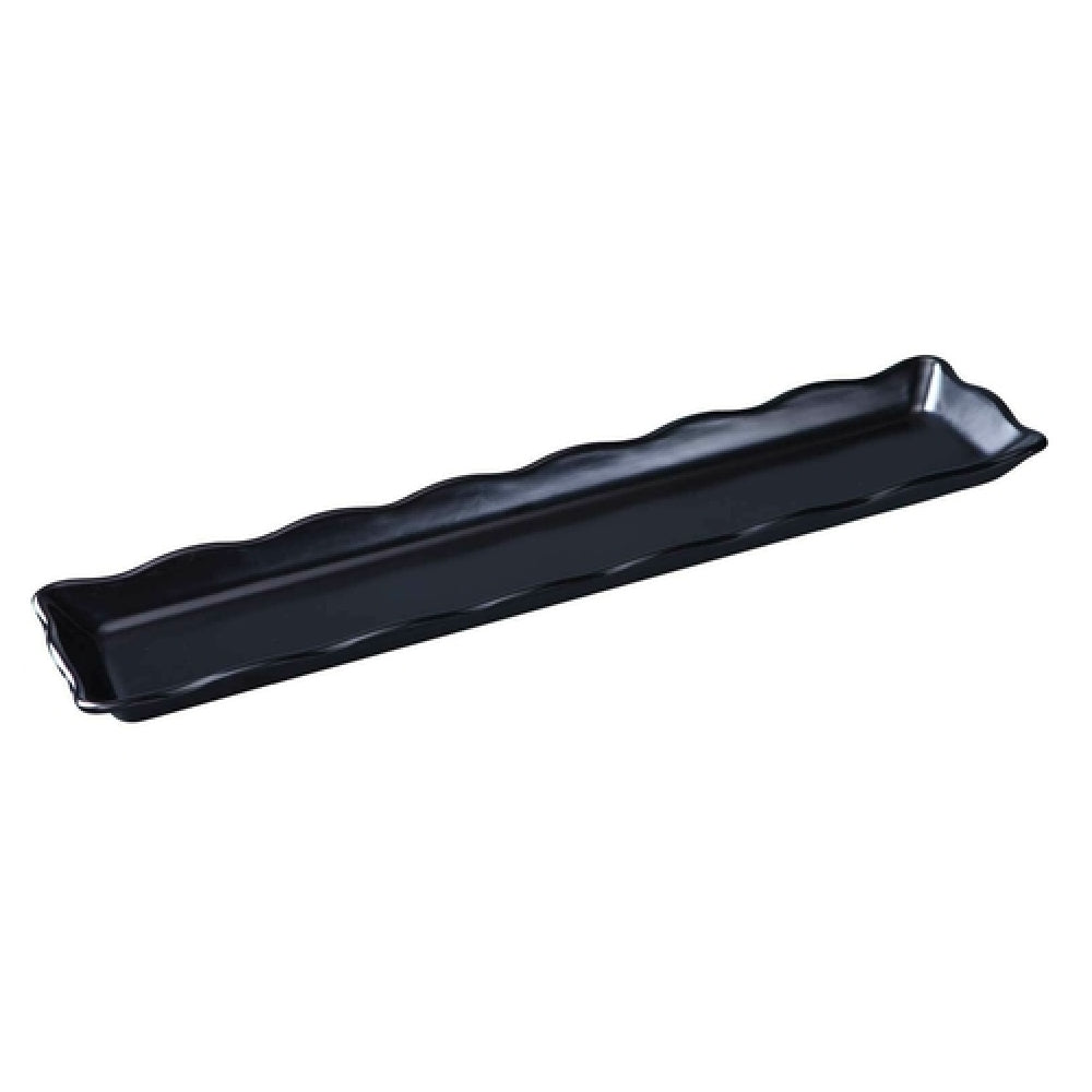 The Yanco DC-6021B Serving Tray is a meticulously designed rectangular tray measuring 21 inches by 5-1/4 inches by 1 inch, making it an ideal choice for a variety of service environments. Crafted from durable melamine, this tray combines both style and functionality, ensuring it withstands the demands of everyday use while maintaining its sleek appearance. The scalloped edge design adds a touch of elegance, enhancing the presentation of any dish served upon it. This tray comes in a sophisticated black color, providing a neutral backdrop that complements any table setting. Sold by the case, with 12 trays per case, it is a practical option for restaurants, catering services, and hospitality venues seeking reliable serveware solutions. The Yanco DC-6021B seamlessly caters to different market segments within the industry, offering a versatile and durable solution for businesses that prioritize both design and utility in their service ware. Its dimensions and construction make it particularly useful for efficient serving and presentation, while its aesthetic qualities elevate the dining experience. This product stands out for its ability to blend seamlessly into any service environment, from casual eateries to upscale dining establishments, ensuring consistency and reliability in service.
