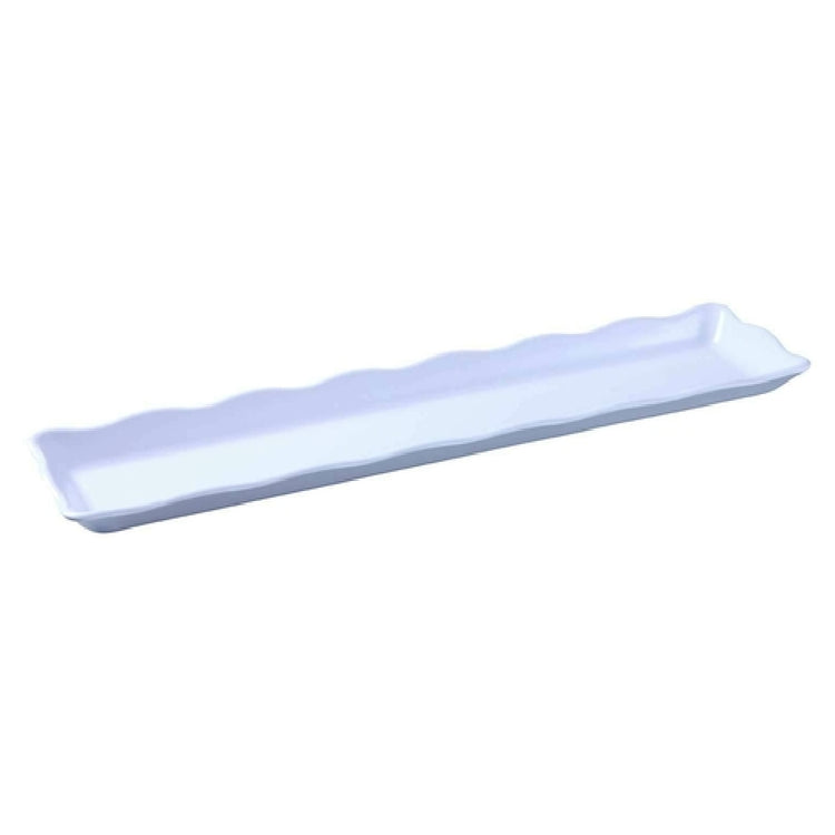 The Yanco DC-6021W Serving Tray is a meticulously designed rectangular tray, measuring 21 inches in length, 5-1/4 inches in width, and 1 inch in height. This serving tray stands out with its elegant scalloped edge, offering a touch of sophistication and style to any dining or serving setting. Made from durable melamine, the tray is both lightweight and resilient, ensuring long-lasting use in various environments. Its pristine white color offers a versatile backdrop for presenting a range of foods, making it suitable for both casual and formal occasions. Sold by the case, each case includes 12 of these finely crafted trays, catering to the needs of large-scale operations such as catering services, restaurants, and hospitality venues. The Yanco DC-6021W Serving Tray combines practical dimensions with an attractive design, making it a valuable addition to the food service industry, where presentation and functionality are paramount.