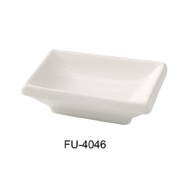 The Yanco FU-4046 Fuji Sauce Dish is meticulously crafted to meet the diverse needs of both home and professional culinary settings. Measuring 2-1/2 inches in width, 3-3/4 inches in depth, and 1 inch in height, this compact dish is ideal for serving sauces and condiments with precision. With a capacity of 1.5 ounces, it provides the perfect portion for individual servings. The dish's rectangular shape, made from high-quality china, adds a touch of elegance to any table setting while ensuring durability for everyday use. Its bone white color complements a wide range of dinnerware styles, enhancing the visual appeal of your culinary presentations. Designed for convenience, this sauce dish is both microwave and dishwasher safe, making it an excellent choice for busy restaurants, catering services, and home chefs who value both functionality and style. Packed by 4 dozen per case, the Yanco FU-4046 offers a practical solution for bulk purchasing, ensuring that businesses can maintain a consistent supply. Whether used in upscale dining establishments or casual dining environments, this sauce dish delivers a balance of elegance and practicality, making it a valuable addition to any food service operation.