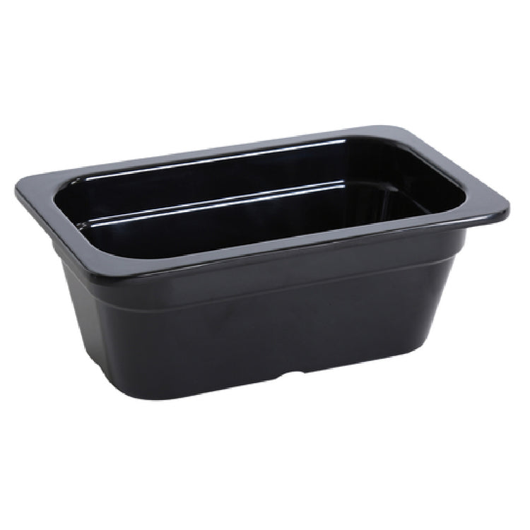 The Yanco GN-611BK GN Pan is a rectangular, melamine kitchen essential measuring 10-7/16 inches in length, 6-3/8 inches in width, and 3-15/16 inches in height. With a capacity of 1.5 liters and a 1/4-size designation, this black GN pan is specifically designed to meet the demands of various culinary environments. Its durable melamine construction not only provides a high-quality, break-resistant option but also ensures the pan is dishwasher safe, facilitating easy cleaning and maintenance. Sold by case, each case contains six pans, making it a practical choice for busy commercial kitchens and catering services. The GN-611BK's versatile dimensions and robust design make it suitable for use in food preparation, serving, or storage within the hospitality industry, ensuring compliance with industry standards while maintaining an appealing aesthetic. Additionally, its sleek black finish complements a wide range of kitchen or buffet settings, offering a stylish yet functional solution for chefs and food service providers. This Yanco GN pan's combination of resilience, ease of use, and professional appearance supports efficient kitchen operations and elevates the culinary presentation, catering to the diverse requirements of different market segments within the food service industry.