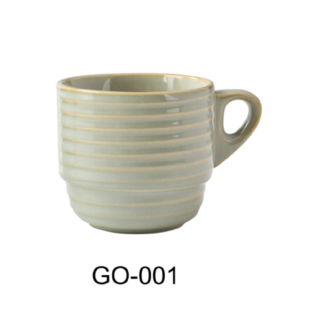 The Yanco GO-001 Golden Coast Stackable Cup is an expertly crafted porcelain cup with precise dimensions of 3-1/8 inches in diameter and 2-7/8 inches in height, providing a convenient 6-ounce capacity. Its distinct design, highlighted by an earthy tone adorned with a golden rim, makes it a stylish choice for various dining environments. This cup is both microwave and dishwasher safe, offering ease of use and maintenance. Such durable and user-friendly features make it particularly appealing for both commercial and residential settings. Sold by case, with each case packed with 3 dozen cups, this product is ideal for high-volume operations such as cafes, restaurants, and catering services, where both efficiency and aesthetic appeal are essential. The stackable nature of the Yanco GO-001 allows for optimal space utilization, making it a smart choice for businesses aiming to maximize storage without compromising on style. Whether enhancing a rustic dining theme or adding a touch of elegance to modern table settings, this stackable cup stands out as a versatile and practical solution within the food and beverage industry.