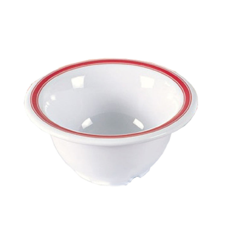 The Yanco HS-5510 Houston Soup Bowl is a durable, high-capacity solution tailored for diverse dining environments, featuring a volume of 10 ounces and dimensions of 5-1/2 inches in diameter and 2-1/4 inches in height. This round bowl is crafted from extra heavy weight melamine, providing excellent durability and resistance to breakage, making it ideal for both commercial and residential use. Its design showcases a striking red band against a classic white background, adding an element of elegance to any table setting. The Yanco HS-5510 is dishwasher safe, ensuring effortless cleaning and maintenance, thus saving valuable time in busy food service operations. Sold by the case and packed in quantities of four dozen per case, this soup bowl is a practical choice for large-scale dining facilities, catering services, and hospitality businesses seeking to enhance their service offerings with reliable and aesthetically pleasing dinnerware. Its robust construction and stylish design cater to the needs of restaurants, cafes, and catering businesses that prioritize both functionality and visual appeal in their tableware collections.