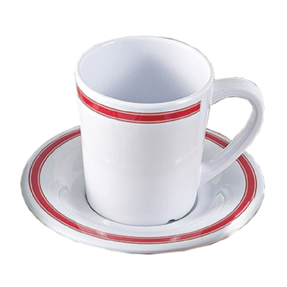 The Yanco HS-9303 Houston Saucer 5-1/2" Dia. Round is a meticulously crafted dishware piece, perfect for settings that demand both style and functionality. This saucer is characterized by its 5-1/2 inch diameter and round shape, making it the ideal size for various dining needs. Constructed from extra heavy weight melamine, it is designed to withstand the rigors of daily use while maintaining an elegant appearance. The red band on white color scheme provides a classic yet eye-catching aesthetic, suited for both casual and formal dining environments. A key advantage of the Yanco HS-9303 is its dishwasher-safe feature, allowing for convenient and hassle-free cleaning. Sold by case and packed by 4 dozen per case, this product is an excellent choice for commercial settings such as restaurants, cafes, and catering services that require bulk quantities. Its durability and design make it a versatile utensil that can enhance the dining experience across various segments of the foodservice industry. Whether used for serving tea, coffee, or any other beverage, the Yanco HS-9303 Houston Saucer delivers consistent quality and reliability, ensuring it meets the high standards expected by professionals in the industry.