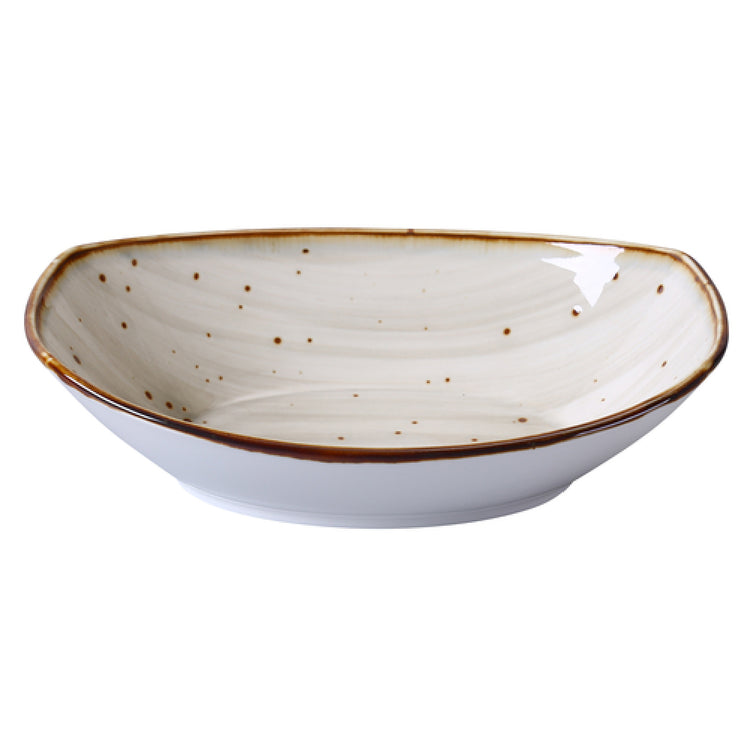 The Yanco LY-409 Lyon Bowl 20 oz. is an expertly designed piece of serveware that combines practicality with elegance. With dimensions of 9"L x 6-1/4"W x 2-3/8"H, this oval bowl is a perfect fit for a variety of culinary presentations, be it in professional kitchens or everyday home dining. Crafted from durable porcelain, it features a distinctive brown speckled glaze that enhances its aesthetic appeal while ensuring longevity. This dish is designed to be dishwasher, oven, and microwave safe, providing unmatched convenience and versatility in food preparation and serving. Sold by the case with a dozen bowls included, the Yanco LY-409 Lyon Bowl is an excellent choice for restaurants, catering services, and hospitality establishments looking for reliability and style. Its robust 20 oz. capacity makes it suitable for serving a wide range of dishes, from appetizers to main courses, catering to different segment markets in the food service industry. This bowl's thoughtful design and high-quality construction make it an invaluable asset to any dining establishment, seamlessly blending functionality with an attractive presentation.