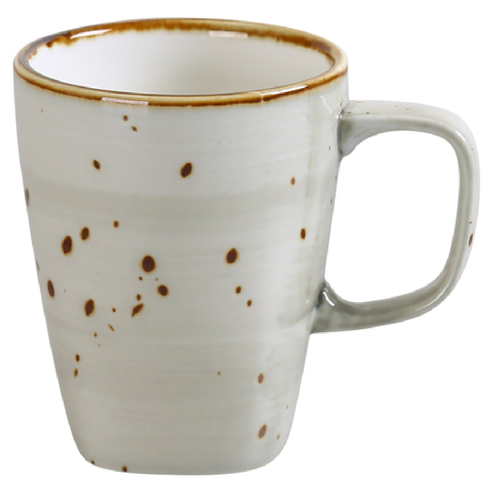 The Yanco LY-503 Lyon Mug is a versatile 10 oz. mug with dimensions of 3-1/4" in diameter and 4" in height, perfectly suited for various dining settings and beverage presentations. Expertly crafted from porcelain, this mug features a brown speckled glaze that adds a touch of rustic elegance to its design. The handle provides a comfortable grip, enhancing user experience whether it's utilized in a cozy café or a bustling restaurant. Notably, its compatibility with dishwashers, ovens, and microwaves underscores its practicality, making it a convenient choice for both hospitality professionals and home users. Sold by the case, each package includes three dozen mugs, ideal for establishments needing reliable, high-volume service ware. The Yanco LY-503 Lyon Mug's combination of durability and classic aesthetic appeal makes it a distinguished choice for those in the foodservice industry, offering a balance of functionality and style that can enhance any beverage service.