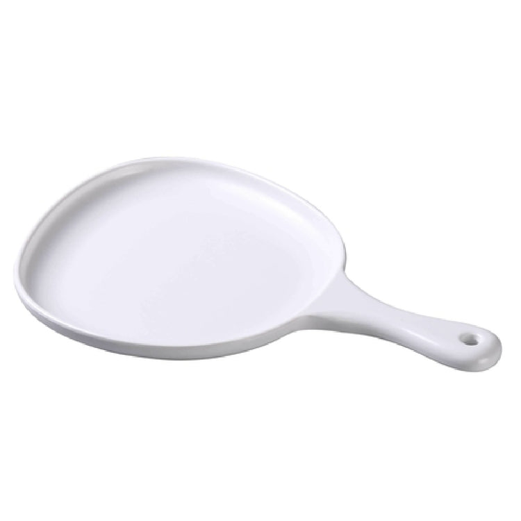 The Yanco MO-810 Moderne Pan Plate is an expertly designed serving solution, measuring 12 inches in length, 8 inches in width, and 1 inch in height, making it a versatile choice for various culinary presentations. Its organic shape, complemented by an ergonomic handle, enhances both aesthetic appeal and practical functionality, ideal for modern dining establishments. Made from durable melamine, this pan plate guarantees long-lasting use while being lightweight, offering an excellent alternative to traditional ceramic dishes. The matte finish in a classic white color provides a sophisticated backdrop, allowing the vibrant colors of your culinary creations to shine. Conveniently dishwasher safe, the Yanco MO-810 ensures effortless maintenance, making it a practical option for high-volume food service environments such as restaurants, catering businesses, and hotel dining services. Sold by the case, with each case containing 1 dozen plates, it provides an economical and efficient stocking option for establishments looking to equip their kitchens with high-quality, stylish serveware. With its combination of style, durability, and functionality, the Yanco MO-810 Moderne Pan Plate is an exceptional addition to any food service operation looking to enhance their presentation standards.