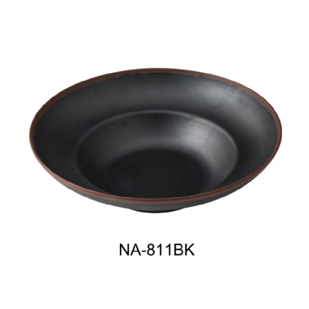The Yanco NA-811BK Nature Art Mediterranean Pasta Bowl is an exceptional addition to any kitchen or dining experience, characterized by its striking design and practical features. This bowl measures 11-1/8 inches in diameter and 3-1/4 inches in height, providing a generous capacity of 20 ounces. Crafted from durable melamine, it ensures longevity and resilience, making it ideal for both casual and formal dining settings. The bowl's aesthetic appeal is enhanced by its black color with a brown accent, adding a sophisticated touch to tabletops. It is designed to be dishwasher-safe, simplifying the cleaning process and ensuring convenience for users. Sold by the case, with each case packed by one dozen, the Yanco NA-811BK is well-suited for professional culinary environments such as restaurants and catering services, where style and functionality are paramount. Its robust construction and dishwasher-safe feature make it a practical choice for high-traffic food service areas, while its elegant design caters to discerning customers seeking a refined dining presentation. Whether used in commercial settings or home gatherings, this Mediterranean Pasta Bowl seamlessly blends style with practicality, meeting the diverse needs of various market segments within the food and hospitality industry.