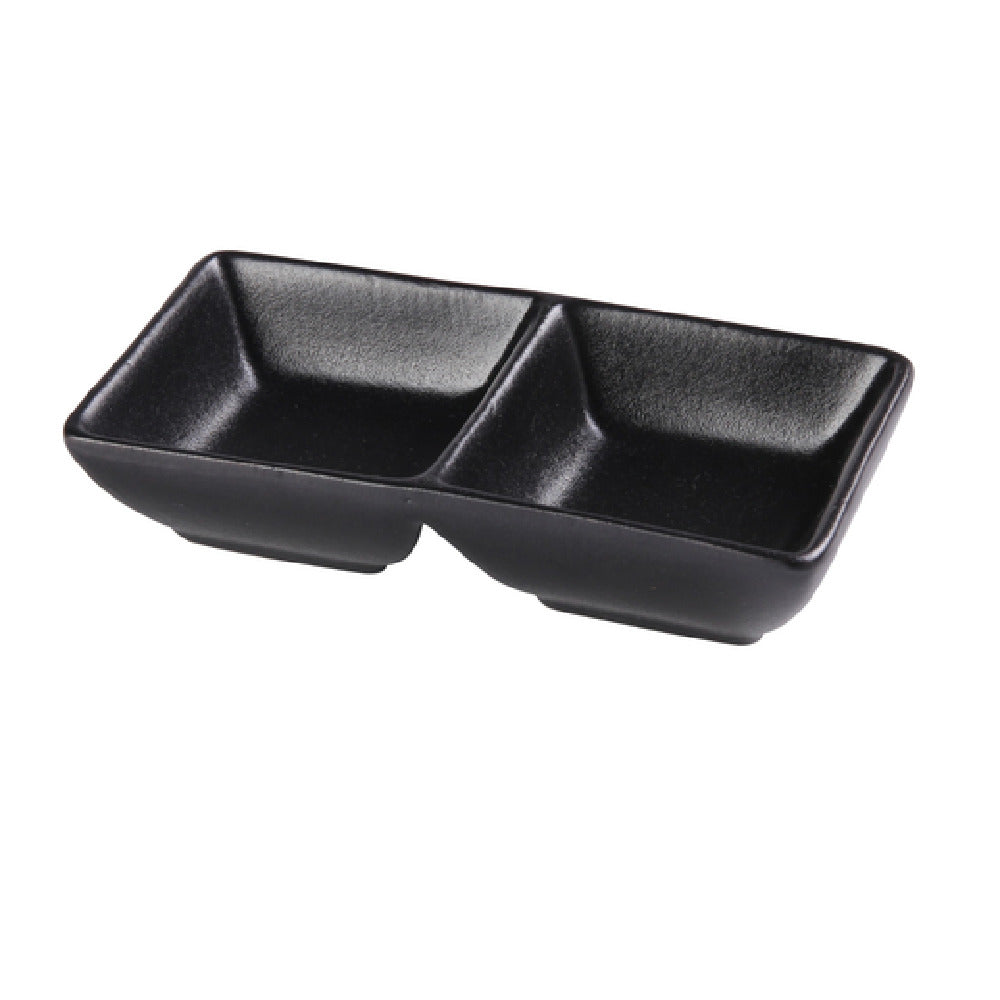 The Yanco NB-4032 Noble Double Sauce Dish is an elegant and practical solution designed to enhance dining experiences with its precise dimensions of 5-5/8 inches in length, 3 inches in width, and 1-1/4 inches in height. This rectangular dish features two sections, each with a capacity of 1-1/2 ounces, combining for a total of 3 ounces, making it perfect for serving multiple sauces or condiments simultaneously. Crafted from high-quality porcelain, the dish is glazed to provide a sleek black finish that complements any table setting. Its construction ensures versatility, being safe for use in dishwashers, ovens, and microwaves, offering convenience across different culinary settings. This product is sold by the case, with each case containing 3 dozen units, making it an ideal choice for large-scale food service operations, including restaurants, hotels, and catering businesses. The Yanco NB-4032 Noble Double Sauce Dish not only enhances the presentation of sauces and condiments but also provides a durable and functional solution for professionals in the culinary industry, combining aesthetic appeal with practical utility.