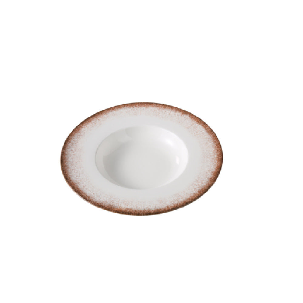 Yanco, PR-411, Porto Pasta Bowl, 12 oz., 11 1/4"dia x 1 7/8"H, dishwasher safe, microwave safe, white and brown, chinaware (Pack of 12) (Packed By: 1 Dozen)