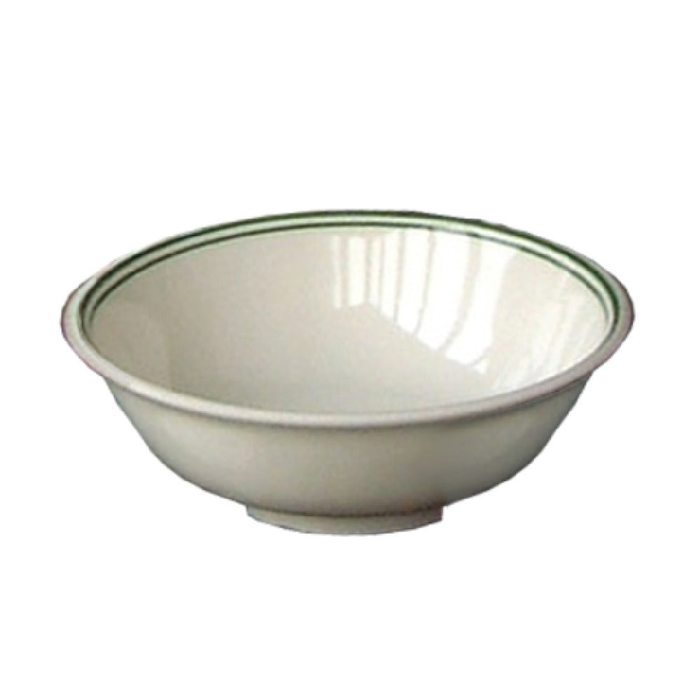 The Yanco PT-507 Pine Tree Soup Bowl is a meticulously crafted piece designed for both aesthetic appeal and functionality, featuring a 32 oz. capacity, this bowl meets the needs of both commercial kitchens and home settings. Its dimensions of 7-1/2 inches in diameter and 2-1/2 inches in height offer a substantial serving size, making it perfect for soups or stews. The round, deep, and rimmed design ensures contents are securely held, reducing spills during serving. Made from extra heavy weight melamine, this bowl is not only durable but also dishwasher safe, providing ease of maintenance without compromising its structural integrity. The green band and beige finish add a touch of elegance, suitable for various dining environments. NSF certification assures users of its adherence to public health standards, reinforcing its suitability for professional and institutional use. Sold by the case, with each case packed containing 4 dozen bowls, it is an ideal choice for bulk purchasing by food service establishments. The Yanco PT-507 Pine Tree Soup Bowl combines practicality with a classic design, making it a versatile addition to any dining collection.