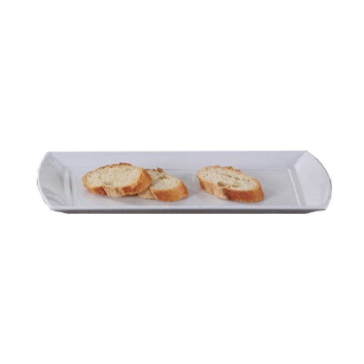 The Yanco RM-4407 Rome Plate is a rectangular serving dish measuring 13-3/4 inches in length and 6-1/2 inches in width, crafted from durable melamine material. Its elegant white finish makes it an ideal choice for various settings, from upscale dining establishments to casual eateries, while also providing a versatile option for catering events. The plate's melamine construction not only mimics the appearance of porcelain but also provides a break-resistant alternative, ensuring longevity and reducing replacement costs for restaurants and service venues. Designed with practicality in mind, the Yanco RM-4407 is dishwasher safe, streamlining the cleaning process and maintaining hygiene standards essential for the foodservice industry. Sold by the case, with each case packed by 2 dozen plates, this product caters to the needs of large-scale dining operations, offering efficiency and consistency in table settings. The combination of its size, material, and design makes the Yanco RM-4407 Rome Plate a practical and aesthetic choice for professionals in hospitality who require reliable and attractive dinnerware solutions for their clientele.
