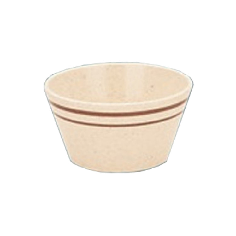 The Yanco SS-302 Sesame Bouillon Cup is a meticulously designed serving vessel with an 8-ounce capacity, measuring 4 inches in diameter and standing 2 inches high. Crafted from extra heavy weight melamine, this cup ensures durability and longevity, making it an ideal choice for both high-volume commercial kitchens and intimate dining settings. The brown band/beige design adds a touch of elegance, suitable for various dining aesthetics. Its round shape facilitates easy handling and serving, while the dishwasher-safe feature guarantees convenient and efficient cleaning. With NSF certification, this bouillon cup meets stringent health and safety standards, making it a reliable choice for restaurants, catering services, and institutional dining operations. Packaged by the case, with each case containing 4 dozen cups, it is perfect for establishments requiring bulk purchases without compromising on quality. The Yanco SS-302 harmonizes practicality with style, providing a valuable asset to any food service operation seeking to enhance their tableware collection.