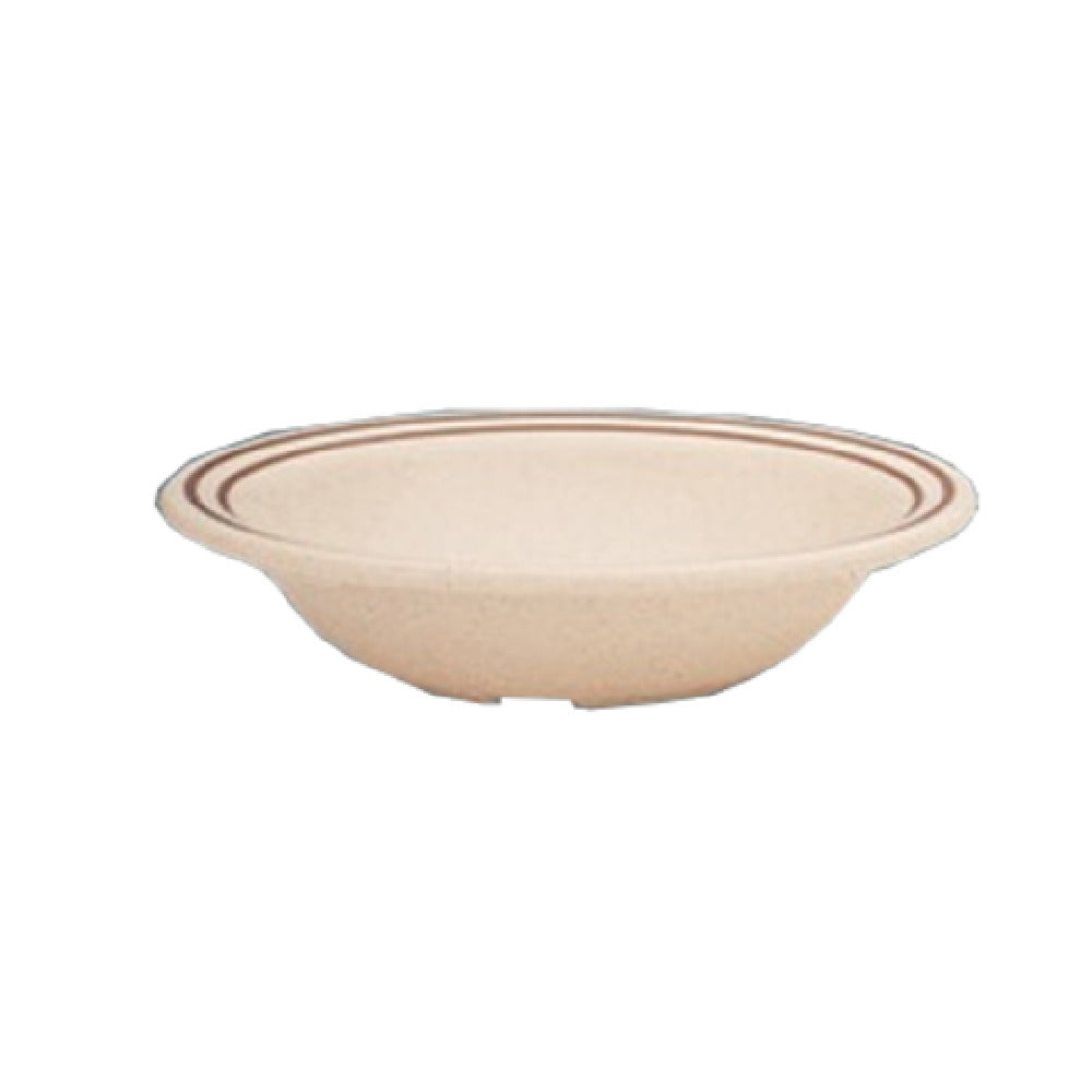 The Yanco SS-306 Sesame Salad Bowl is a meticulously designed serving solution perfect for diverse dining environments. With a capacity of 10 ounces, this bowl is ideal for portion-controlled servings, catering to the needs of restaurants, catering services, and home dining alike. It measures 6-1/4 inches in diameter and 1-1/2 inches in height, creating a compact yet functional form factor for salad servings. Crafted from extra heavy weight melamine, this bowl offers a durable and resilient build, ensuring longevity and reduced breakage risk in high-volume settings. The bowl's aesthetic is elevated by its brown band and beige color scheme, providing a subtle, elegant appearance that complements various table settings. Its round shape enhances the presentation of dishes while being practical for stacking and storage. Dishwasher safe, the Yanco SS-306 prioritizes convenience and efficiency in cleaning and maintenance processes. Additionally, it is NSF certified, signifying its adherence to stringent safety and quality standards crucial in professional food service environments. Sold by the case, packed in four dozen per case, this salad bowl is a versatile and reliable choice for those in need of bulk quantity without compromising on quality and style.