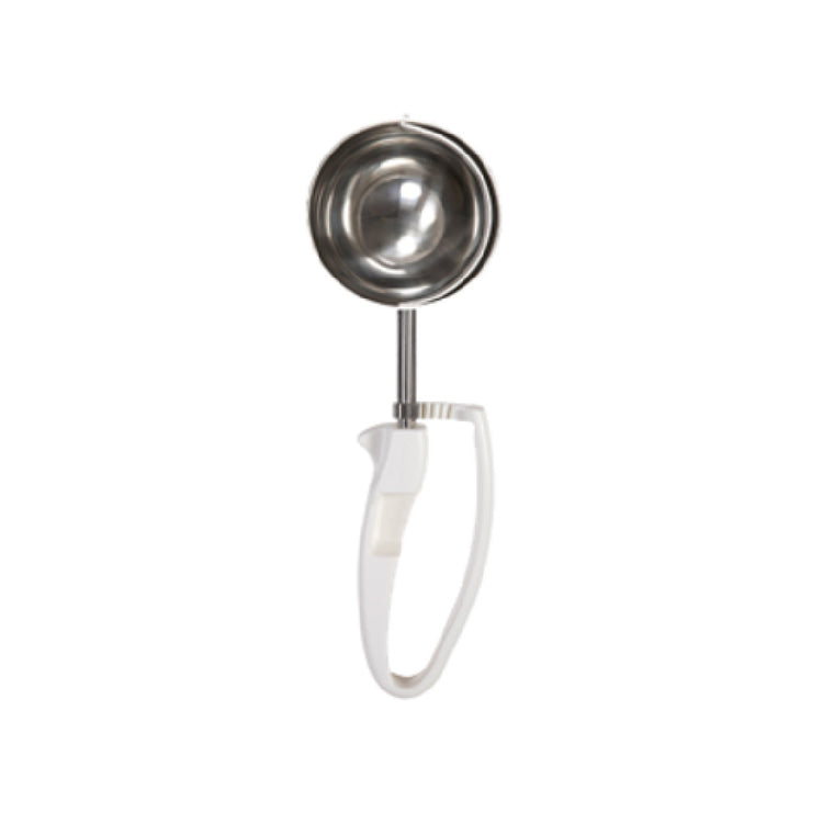 The Zeroll 2006-EX ZerollĀ® Universal Extended Length EZ Disher Size 63 is an innovative tool designed for precision and versatility in professional food service environments. It features a 6.3-inch bowl diameter, making it suitable for a variety of culinary applications. This disher is engineered for both right and left-handed use, enhancing its accessibility and functionality in diverse kitchen settings. Its ergonomic design ensures comfort during repetitive tasks, reducing hand fatigue. The handle is color-coded in white, simplifying kitchen organization and tool identification. Constructed from stainless steel, the bowl and scraper blade promise durability and resistance to corrosion, essential for daily commercial use. Notably, this disher is free from springs, which minimizes the risk of mechanical failure and eases maintenance. Its NSF approval underscores its compliance with global public health and safety standards, making it a trusted choice for restaurateurs and chefs committed to quality and hygiene. The Zeroll 2006-EX is an exemplary utensil for those seeking reliable performance, thoughtful design, and compliance with industry standards, making it a valuable asset in professional kitchens focused on efficiency and precision.