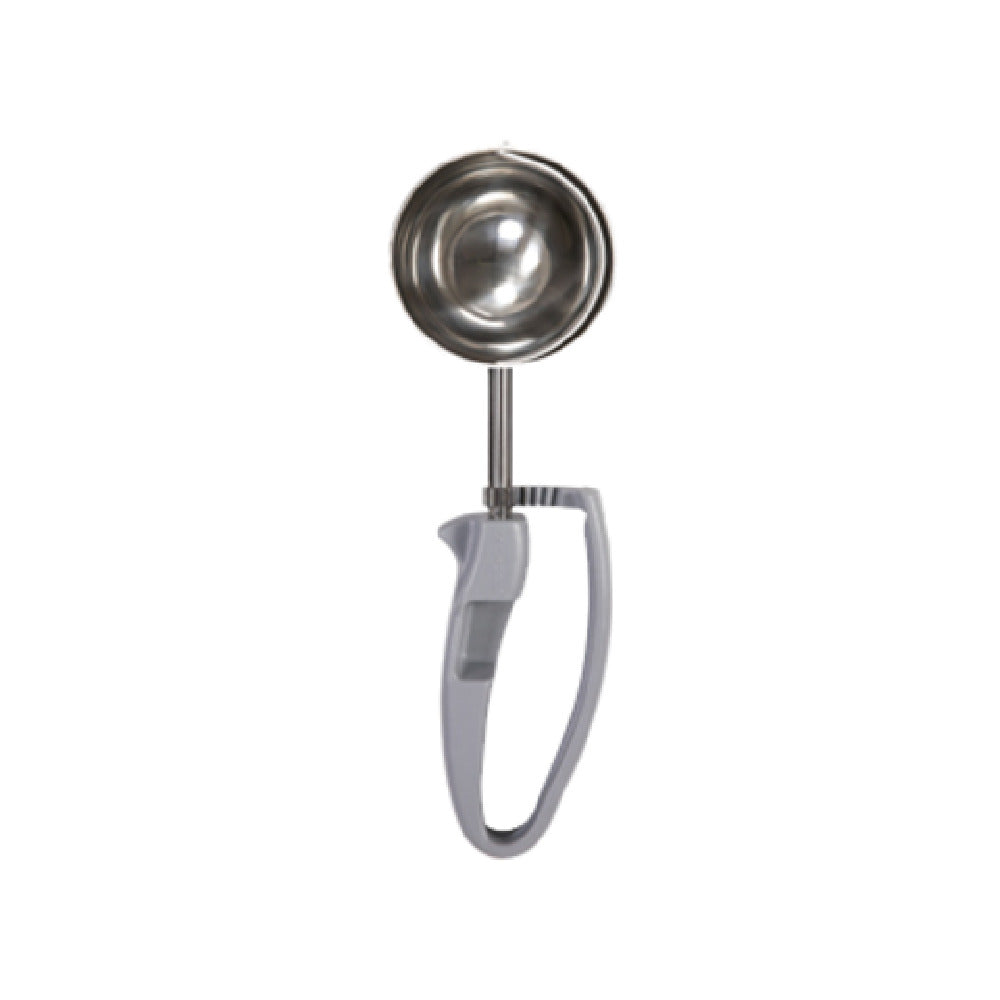 The Zeroll 2008 Zeroll® Universal EZ Disher Size 82-3/4" Bowl Diameter Right Or Left Handed Use is a high-quality kitchen tool that combines ergonomic design with versatile functionality. This disher features a stainless steel bowl and scraper blade, providing durability and ease of cleaning. With its 2-3/4" bowl diameter, it is suitable for precise portion control in various culinary applications. The disher is engineered for both right and left-handed use, making it accessible to a wider range of users. Its grey color-coded handle ensures quick identification in busy kitchen environments. The absence of springs in its design enhances reliability and reduces maintenance needs. Approved by the NSF for commercial use, this tool meets stringent public health and safety standards, making it ideal for professional kitchens, including restaurants, cafeterias, and catering services. The Zeroll 2008 Zeroll® Universal EZ Disher is not only a practical choice for chefs seeking efficiency and precision but also a valuable addition to home kitchens that demand professional-grade equipment. Its thoughtful design and superior construction make it a versatile and reliable tool for consistent food preparation.