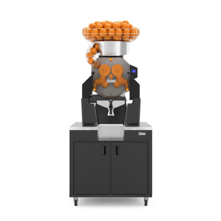 The Zumex 08818 SPEED UP ALL-IN-ONE WIDE BLACK (08818) Speed Up All-in-One Wide Juicer is an advanced electric juicer designed for high-efficiency performance, capable of processing 40 fruits per minute. It accommodates a wide range of fruit sizes, from 2.56" to 3.19" in diameter, specifically optimized for oranges, grapefruits, lemons, limes, and tangerines. The juicer features a substantial feeder capacity of 44 lbs. (20 kg) and a waste capacity of 100 lbs., ensuring extended operation with minimal interruptions. Engineered with versatility in mind, it includes an M Kit for fruit diameters between 65-81 mm, with optional S Kit (45-67 mm) and L Kit (75-95 mm) for various fruit sizes. Power options are flexible, accommodating 220-240V at 50-60 Hz, 120V at 60 Hz, and 100V at 50-60 Hz, with power outputs of 460 W/0.62 HP, 320 W/0.43 HP, and 350 W/0.47 HP. This floor model juicer is ideally suited for commercial environments where speed and efficiency are paramount, delivering high-quality juice production with reliability and ease. Its sleek black design and robust capabilities make it a premier choice for businesses seeking superior performance in juice extraction.