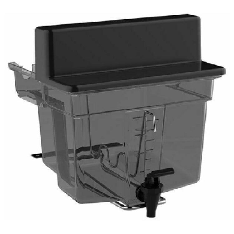 The Zummo 210816E-5 (FULL TANK) Z40 N Complete Tank is an essential component designed for the Z40 Service model, with a 2-gallon capacity that makes it suitable for various market segments requiring efficient liquid dispensing solutions. This complete tank setup includes a dispenser tap, ensuring easy and controlled dispensing of contents. It also comes with a stirrer manual, which aids in maintaining the uniformity of the liquid mixture within the tank. The transparent plastic tank allows users to visually monitor the liquid levels, ensuring timely refills and efficient operation. Supporting the tank is a sturdy tank support, which provides stability during use. The tank lid is included to prevent contamination and spillage, ensuring the contents are stored safely and hygienically. The Zummo 210816E-5 is specifically constructed to seamlessly integrate with the Z40 Service model, offering a complete and reliable solution for industries that depend on precise and efficient liquid handling. This product's design and components highlight its focus on practicality and ease of use, making it a valuable addition to any operation requiring robust liquid management capabilities.